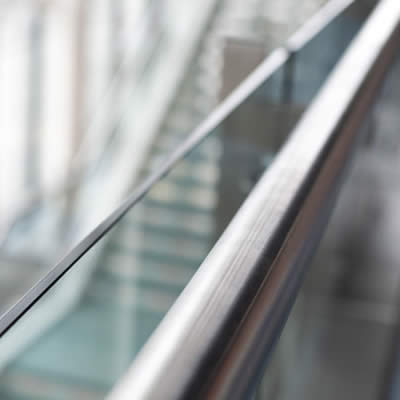 The glass infill balustrade is supported through stainless steel uprights and handrails.